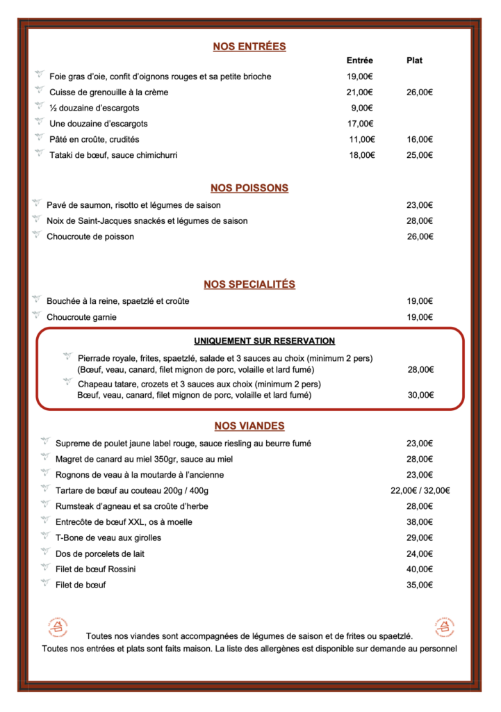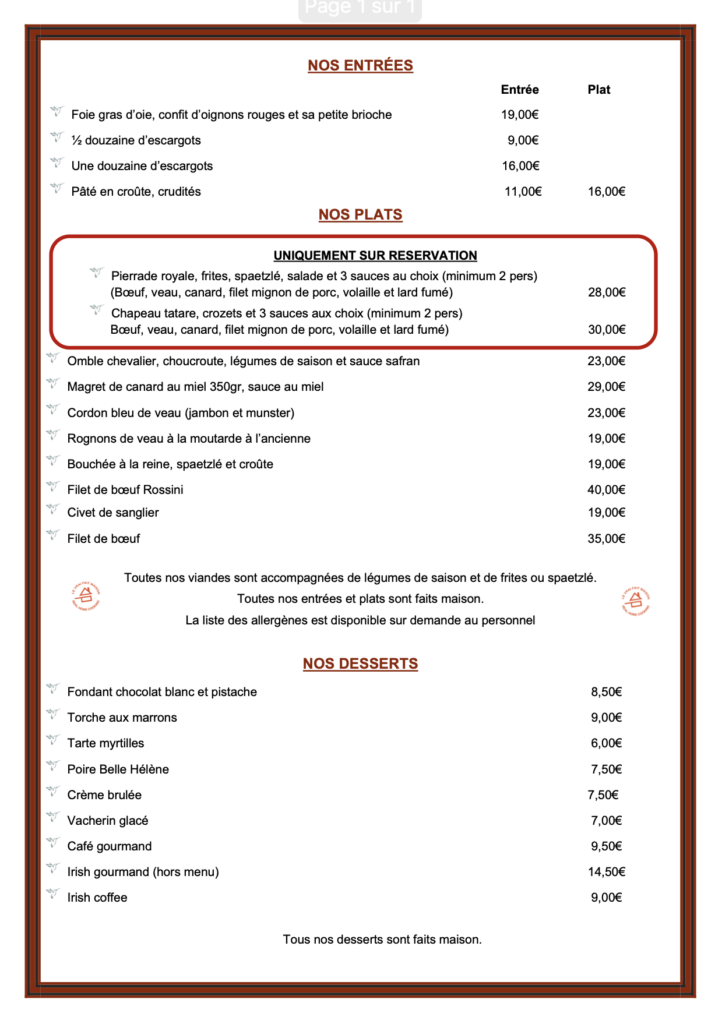 La Maison KOLIFRATH et son équipe vous proposent depuis fin janvier 2023 la dégustation de plats traditionnels alsaciens et autres mets à base de charcuteries et viandes préparées dans les laboratoires de notre boucherie.